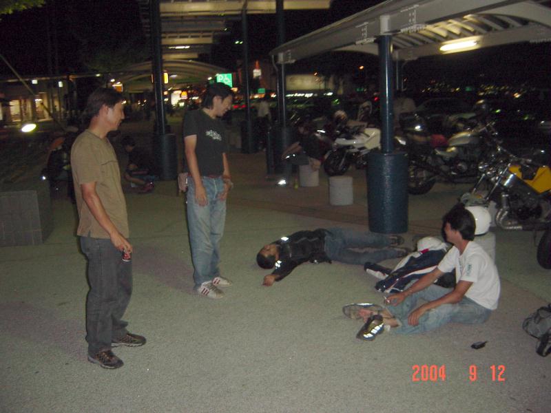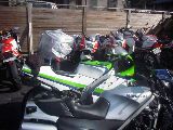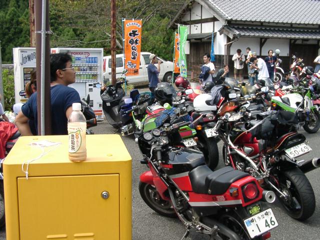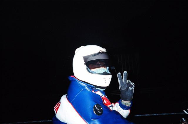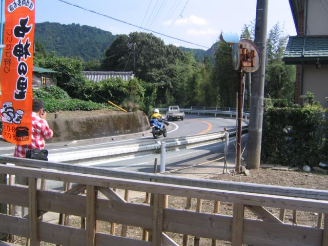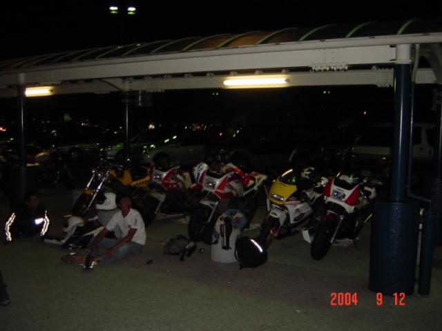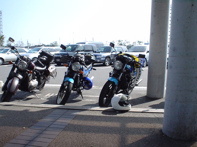 おやぁ〜? さっき電話で、ローソンが無いと言っていたのに、ここにはローソンがある。 で、ばくに、「さっき電話でローソン無いって言ってはったで。 あつしさんがあるかないか聞いてた。」 そこで、ばくがあつしさんと電話で確認。 そしたら「もう少しいったとこ。」ということで、 ヘルメットかぶってエンジンかけてさぁ、行くかというところで電話が。 ばくがあわてて電話をとり、 「ちょっと待ってくださいね。」とヘルメットをあわててとる。 KAZUさんでした。 あつしさんと同じく心配して下さりまして「今すぐ行きますから。」と返事して 出発。 言われたとおりすぐそこにあった。 みんな夕飯食べてた。 腹減ったとばくもうどんくってた。 そのうどんがあとで悲劇になると知らずに・・・・ 合流したてつさん(3時間もそこで待っていたそうです)と話をして、 ばくと私とあつしさんは、高速をもう少ししたらおりて 下道で行くのでと挨拶して走りだす。 高速をおりて下道。 あつしさん、私、ばくの順で走ってると、 ばくのライトが明るすぎてまぶしい。ハイビームに紙テープだからしかたないけど。 仕方ないけど信号待ちで、ばくに「ライトまぶしい」と言った。 山の中、真っ暗。 なのに急にばくのハイビームが消えた。 さっきまぶしいって言ったからか? ライトつけててもいいのに。 次にとまるときに点けていいって言おう。と思ったら コンビニであつしさんが停まった。 あつしさんもばくのライトが気になったらしい。 「ライトつけていいで。」と言ったら、「ハイも切れた」の返事。 ・・・・・・・・ そこで山をおりたところにあるジャパンで電球を買うことに。 ジャパンで買いました。電球。 そしてあつしさん一個割りましたw 二個入りでよかったですな。 そして付けた これでライト復活。でもばくだけ。 私のGPXは、カウルをはずさないといけないので、 私は帰ってからしか電球がつけれません。 ライトが点くばくを前にして、私は後ろをついていくことに。 あつしさんは、「ゆっくり行くから先に行き。」ということで 先に行こうとばくと私がジャパンを出た、すぐ目の前の信号待ち。 いきなりばくが「ライト点け」って言ってきた。 ライトを消した覚えはないので、「点けてるって。」と返事。 「点いてないって。」 「点けてるって。」 「点いてないって。」と言い合う。 「点けてるって。ほら。」とライトスイッチをカチャカチャ。 ばく「切れてるわ」 「・・・・・・マジで?」