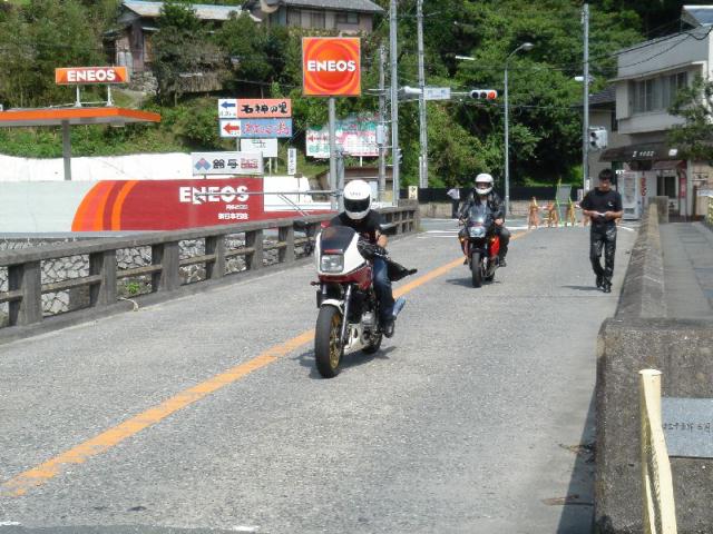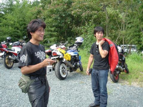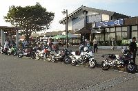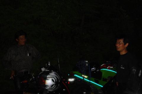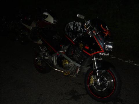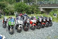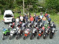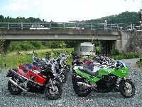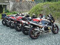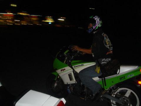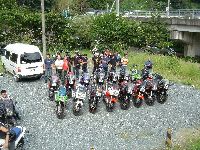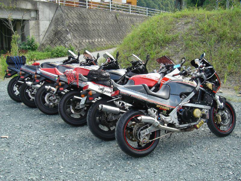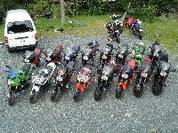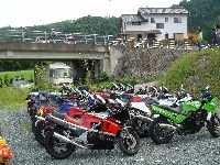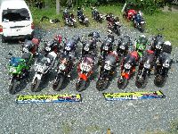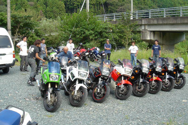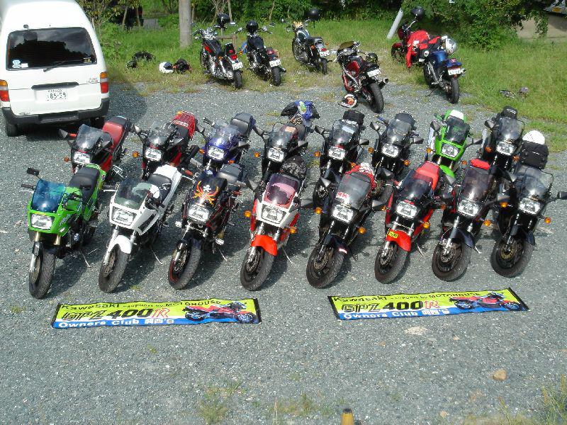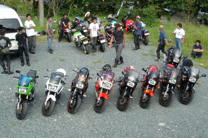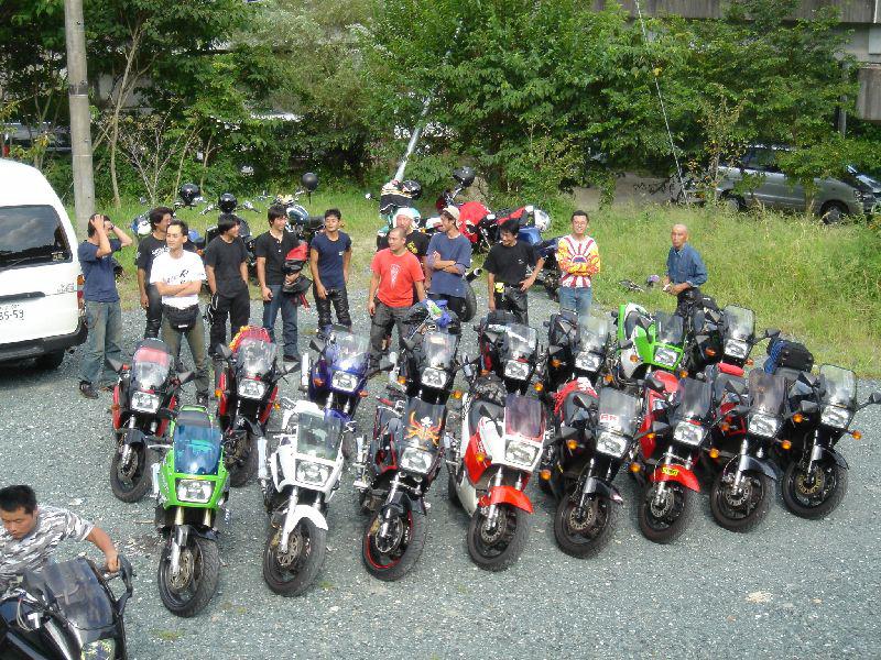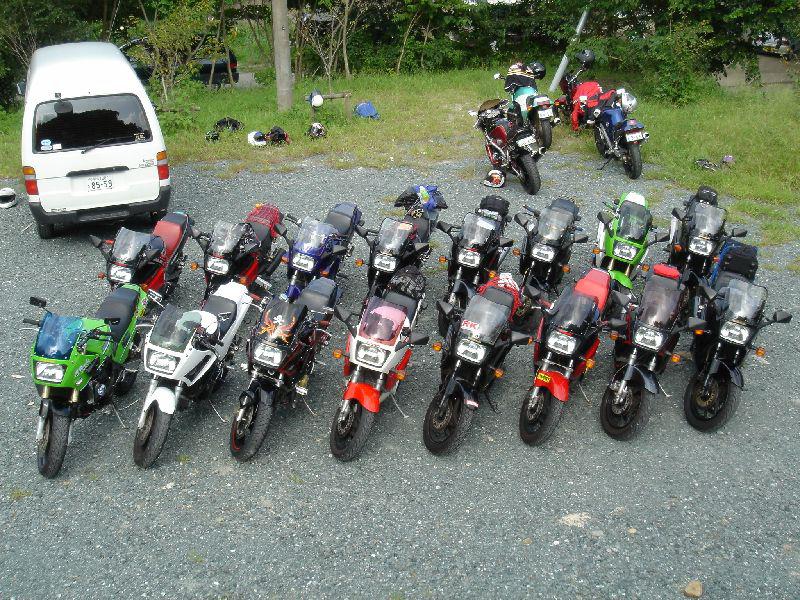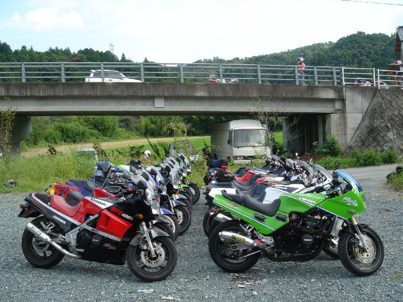 皆様の感想やお言葉のなか、ちょこっと寄り道。 80's Meetingが大盛り上がりの中、次の夢をつないで終幕を閉じた中、その後に開かれたイベントもありました。 私がGK71B CLUBの面々と時間を過ぎても盛り上がって、片づけをしてたりして、ふらふらになって、BRさん、chokuさんとWishさんに避難、、、さぁ食事でもと思って到着したころ、ちょうど、皆様が集まっておられました。 当日参加の多かった、GPZ隊の関西's、関東'sの方々大集合でした!! うげぇ!!こんなにおったんだ!!ってくらいのすごい数!! GK71B CLUBもこのくらい台数集めてみたいなぁ。。。 私たちが到着したころ、ちょうど皆さんお帰りになるところで、ゆっくりお話できませんでした。 まぁ時間があっても、私死んでましたが。。。 それでは、その模様を jamgoose さんのレポートより 〜jamgoose さん談〜 80‘sも無事終了!こっからはGPZ400Rオーナーズクラブ全国ミーティングの為wishへ移動 昼食を注文 こん時テーブルを囲んだのが WIZARDさん、青木さん、はまこうさん、KAZUさん、本多さん、師匠、禅さん、種馬さんでした (エロ話しに花咲いてましたねぇ) 僕は…緊張でほとんど話せない(…情けない) せっかくのチャンスやのにぃ…(涙) 会場うろついてる時に…以前カワマガで見た方が…魔王さんです ニコニコされてました 「魔王さんですか?」「はい、あの〜?」「jamgooseです」「あ〜(笑顔)」と、握手して下さいました あの時の右手は、まだ洗ってません!(ウソ) 宴もそろそろ…記念撮影!16台の小ニンジャ! またの再会を約束し、解散… この時、はまこうさんが…「あっ!例の(うふっ!内緒!)」「え〜!憶えて下さってたんですか〜!」(涙)挨拶すらできなかったけど 激レアの一品を頂き大変感激しました(涙) 帰りは魔王さん先頭の隊列です 同一車種がこんだけ走ると沿道の皆様の視線がぁ…最後尾はKAZUさんが付いてくれてます(安心) 給油をし あっ!こん時誰かが「禅さん!ディーゼルこっち!」って…俺…大爆笑…ごめんネ 禅さん(謝) 三ケ日から高速上がり検札所で小休止…ここで、各方面、涙のお別れです…名古屋方面の方、名神組、名阪組…それぞれ再会誓います… 東名と、東名阪の分岐で小休止 魔王さんと、お別れです…お疲れ様でした… 名阪組はKCBM参加の、てつさんが上野で待機中との事、とりあえず、御在所を目指す! ここからの指揮はKAZUさんです しゅうさくさんを先頭に隊列 思えば、ずっーと しゅうさくさんに面倒みてもらってます(感謝) 御在所で小休止、給油…ここで、モトハウスの、お客様とお別れ…「ありがとうございました また いつか!』再会を約束する ここでハプニング!ばくさんと、じゅんさんのLowビームが点かない…何で?この2人だけ?やっぱり赤い糸で結ばれてるんですかねぇ〜(笑) あつしさんが、テープで応急処置…っていうかぁ〜あつしさん…何で車でBikeと一緒に走れるのぉ??東名混んでたしぃ〜(悩) 目指すは、てつさんの待つ伊賀上野! こっからは夜間飛行です 僕はスモークシールドやから「前が見えねぇ〜!」 伊賀上野PA到着! てつさんは、3時間も待っていてくれたそうです…ゴメンなさい…(謝) ここで夕食、談笑をし、そして、ばくさん、じゅんさん、あつしさんとお別れです…「気を付けて〜!また会いましょう!」 ここから、てつさん、まっちゃんさんに、付いて行きます 夜間なのに、飛ばす、飛ばす!! 天理の下りに、さし掛かった時…僕は自分の目を疑いました…「2人が消えた!?」…そう、ワープしたんです…400Rにオプションで、ワープ装置あるんでしょうか?(…俺もほしい〜!) 待ち合わせの香芝SA到着 ここで てつさんの400R見せてもらいました 小技効いてますぅ 僕もマネしよっ! じゅん さんのレポートより 〜じゅん さん談〜 wishというライダーズハウスのオーナーさんと知り合いだと、 ずっとwishで待っててもらってたあつしさんに プレサージュで迎えに来てもらって、 みんなでwishに場所を代えて、 関西’s、関東’sが集結。 GPZ400だけでこの台数。 他の車種(GPZ900、750からZZR400、GPX250、GSX1400)併せて、全部で40台近くだそうです。 半分以上が名前がわからない人たちなんですけど・・・・。 wishにて、昼飯をみんなで食べ、色々話をする。 バイクを並べて写真撮影会。 みんな数時間、そこでだらだらと話をしたり 名前と顔が一致してない人たちが多いので、 名前を聞いてびっくりすることも。