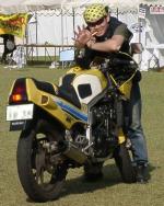 私は「ヨシムラサイクロンが写るように横からにしてください〜ライダーは、前だろうか、後ろだろうが、なんでもいいです〜乗っててもいいですよ〜」